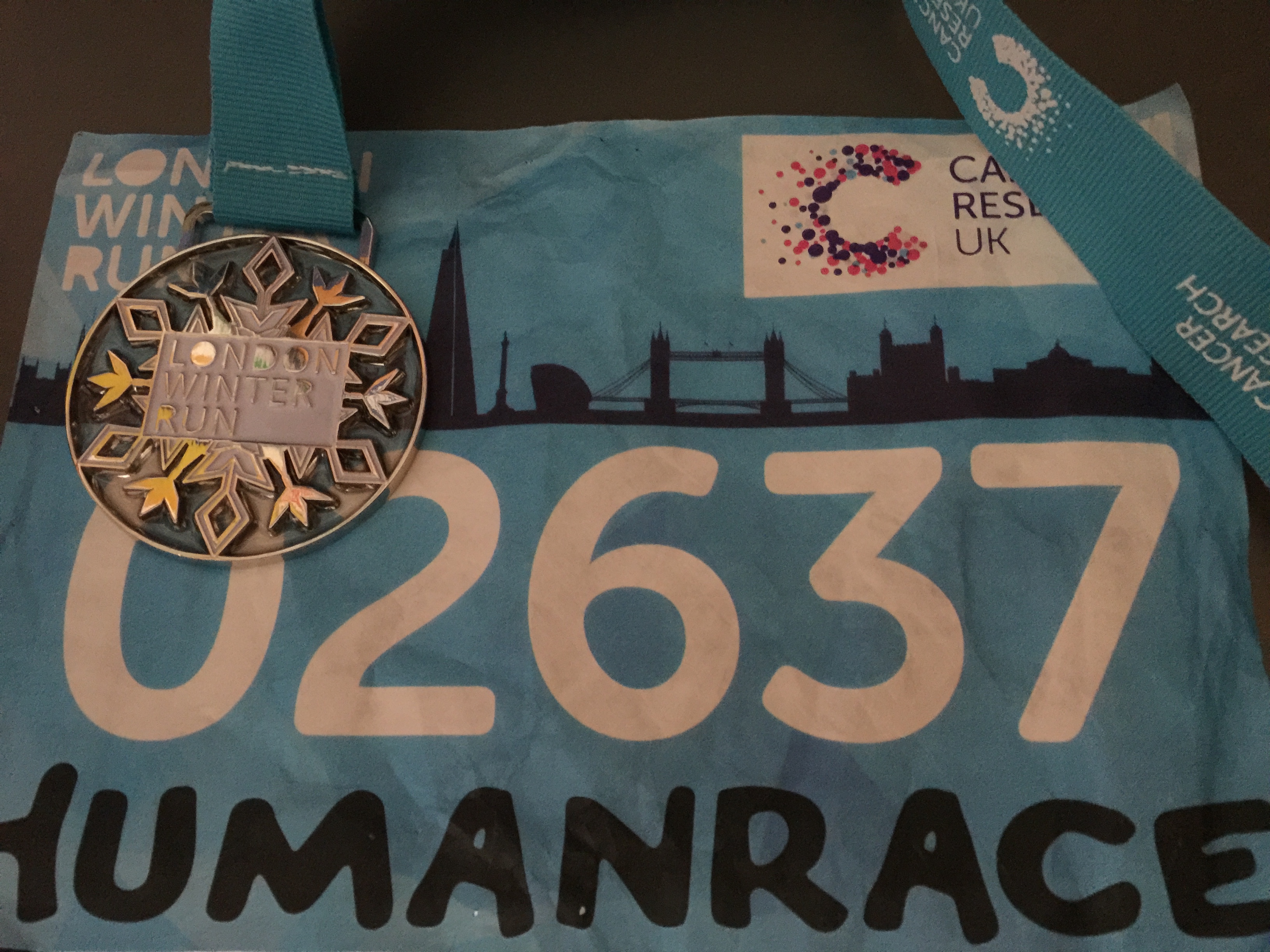 I managed to cross the finish line in 38:18, which was ‘exactly’ my previous PB from the Queen Elizabeth Olympic Park 10k in November last year. As a whole, I was a little disheartened as I really wanted to run the course in under 38 minutes. Reflecting back, I feel that I could have perhaps pushed myself a little harder in the final kilometre to run my desired time. However, owing to the very cold conditions and standing in the start pen for some 45 minutes prior to the race, am still going to give myself a pat on the back.