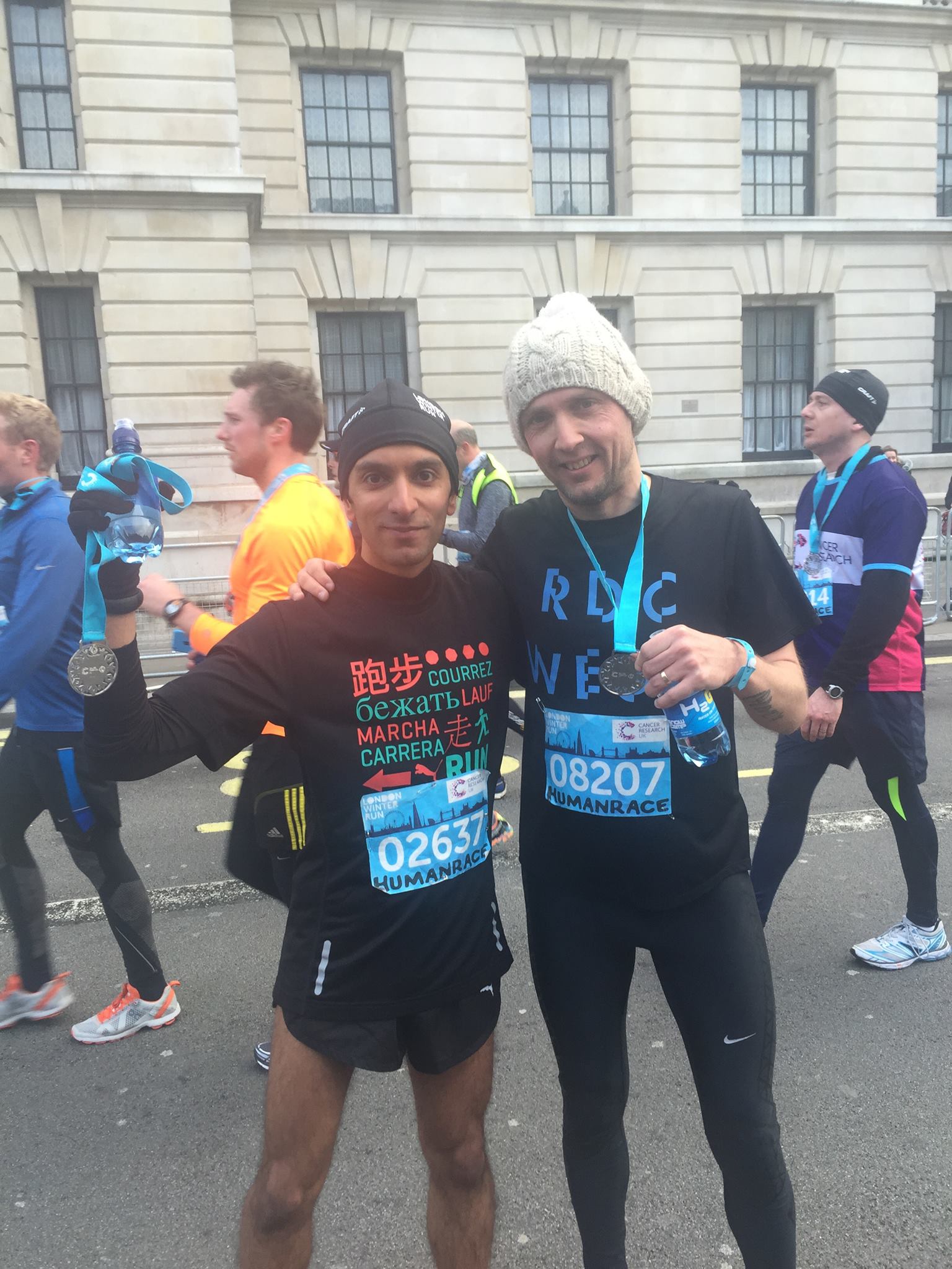 At the finish I met a running friend of mine, Mark, who also had a good run, finishing in 39:11! We had a chat and got our medals before having our photo snapped by a fellow runner. The only other items given at the finish were a well deserved water bottle and coconut drink. A little disappointing after paying around Β£40 for a 10k run. A goody bag with a finishers T-shirt would have been very much appreciated.