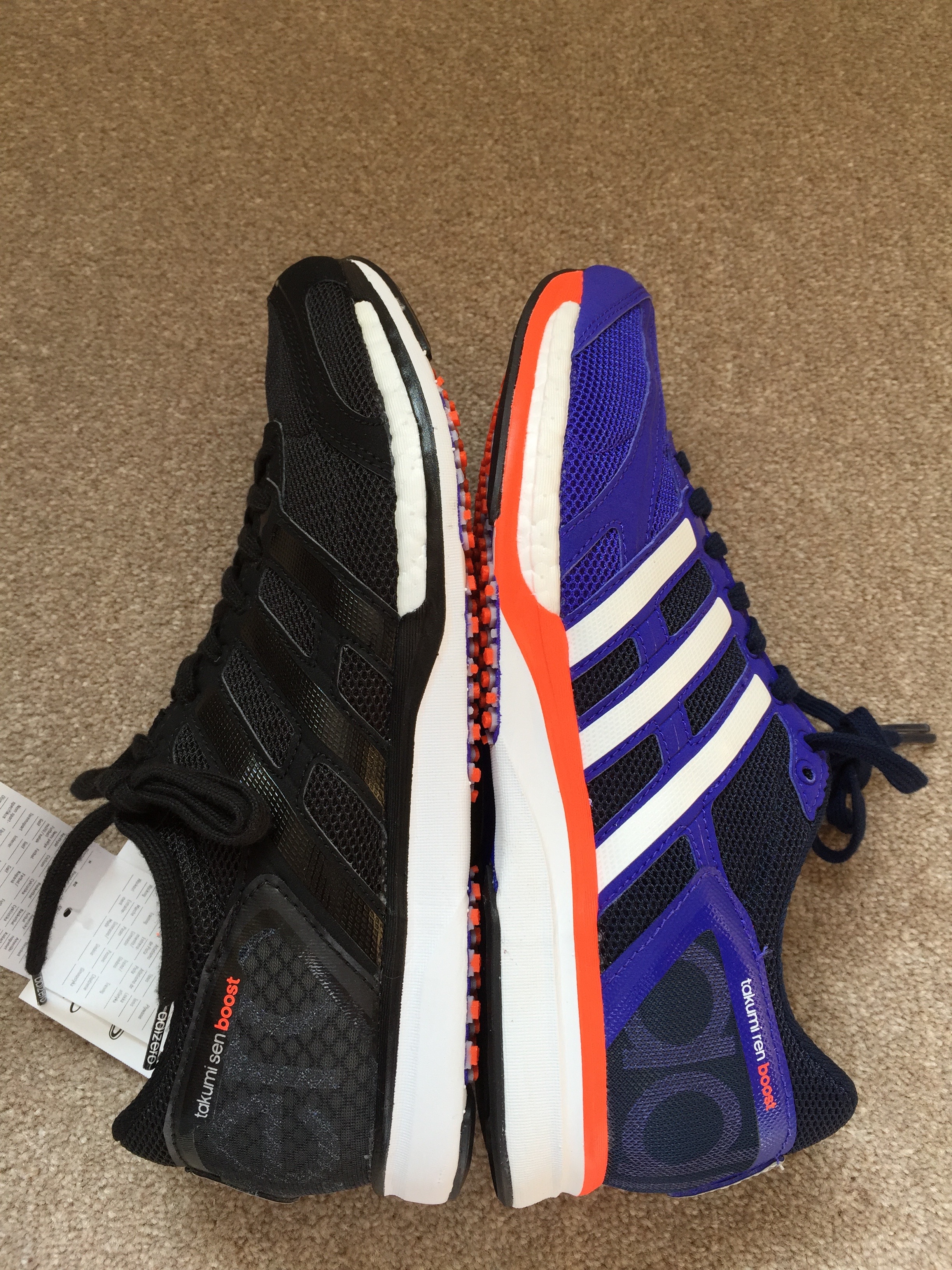 Without hesitation, I ordered the Takumi Sen and Takumi Ren models, taking delivery for them just today. Priced at £120 each, they are not cheap, and one of the more expensive running shoes in adidas’s range. I am currently tapering for the Brighton marathon this Sunday (less than 3 days to go!), so will be giving these shoes a thorough testing and review after this. However, preliminary thoughts are as follows.