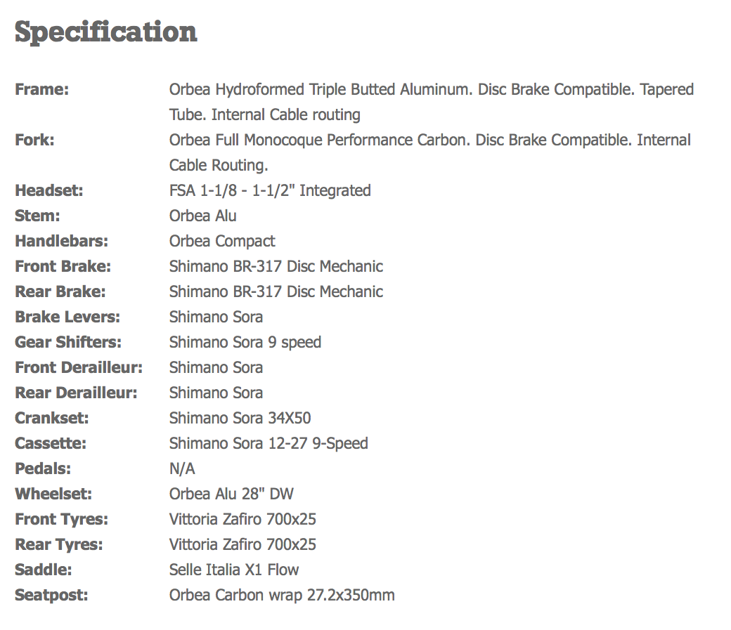 Deciding what bike to buy After much browsing (and agonising) I finally nailed my choice down to the Orbea Avant H50 and Orbea Avant H30D. Last week, I called the Cycle Surgery store at the Velo Park in Stratford and they kindly ordered these two bikes in for me to test ride. The main differences between these models are the brake/gear shifters, crankset, cassette and brakes; the H50 uses traditional rim/V-breaks and the H30D has mechanical disc brakes.