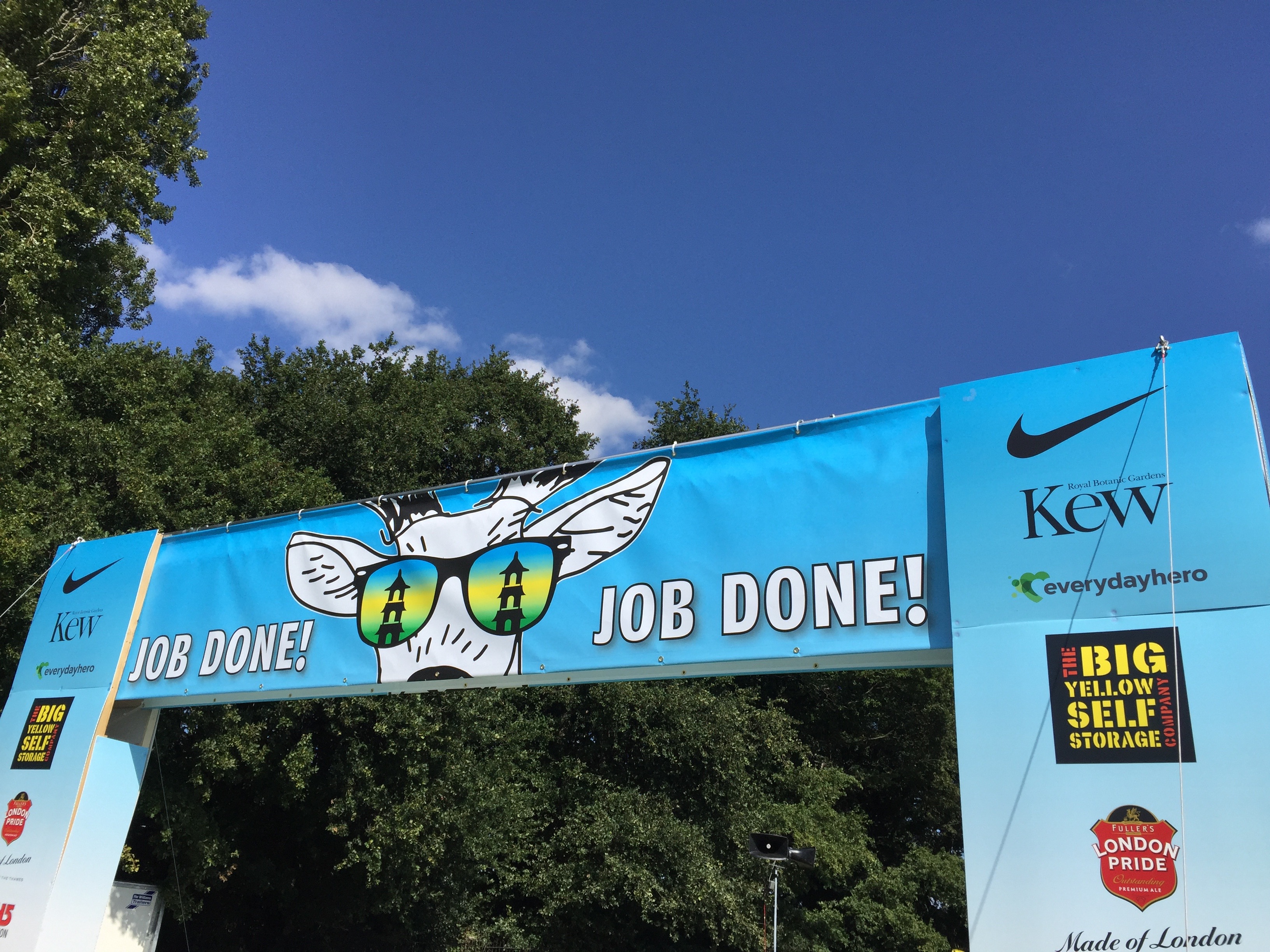 I finally collected my Nike Tech finishers T-shirt and goody bag before heading out. A quick summary of my post-run activities included a complimentary (and much appreciated) massage from the St. Marys University tent, lunch at Yo! Sushi with Sania and her sister Shelly, watching the Kids Mile (some very competitive young beans!) and finishing with a Starbucks before heading home. So all-in-all, a great run and awesome day out. I will definitely be back next year, that is not even a question worth considering! Roll on September 2016 🙂