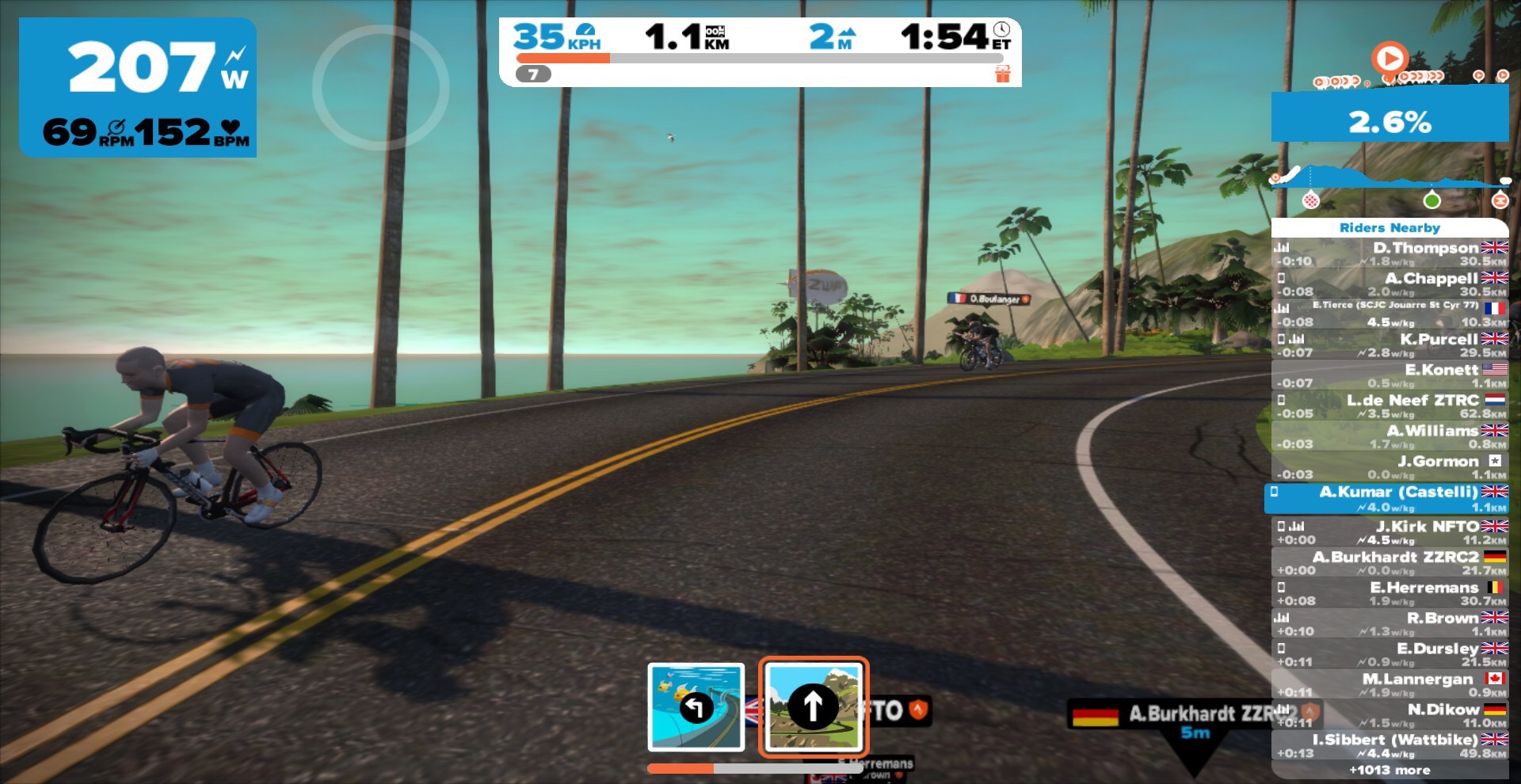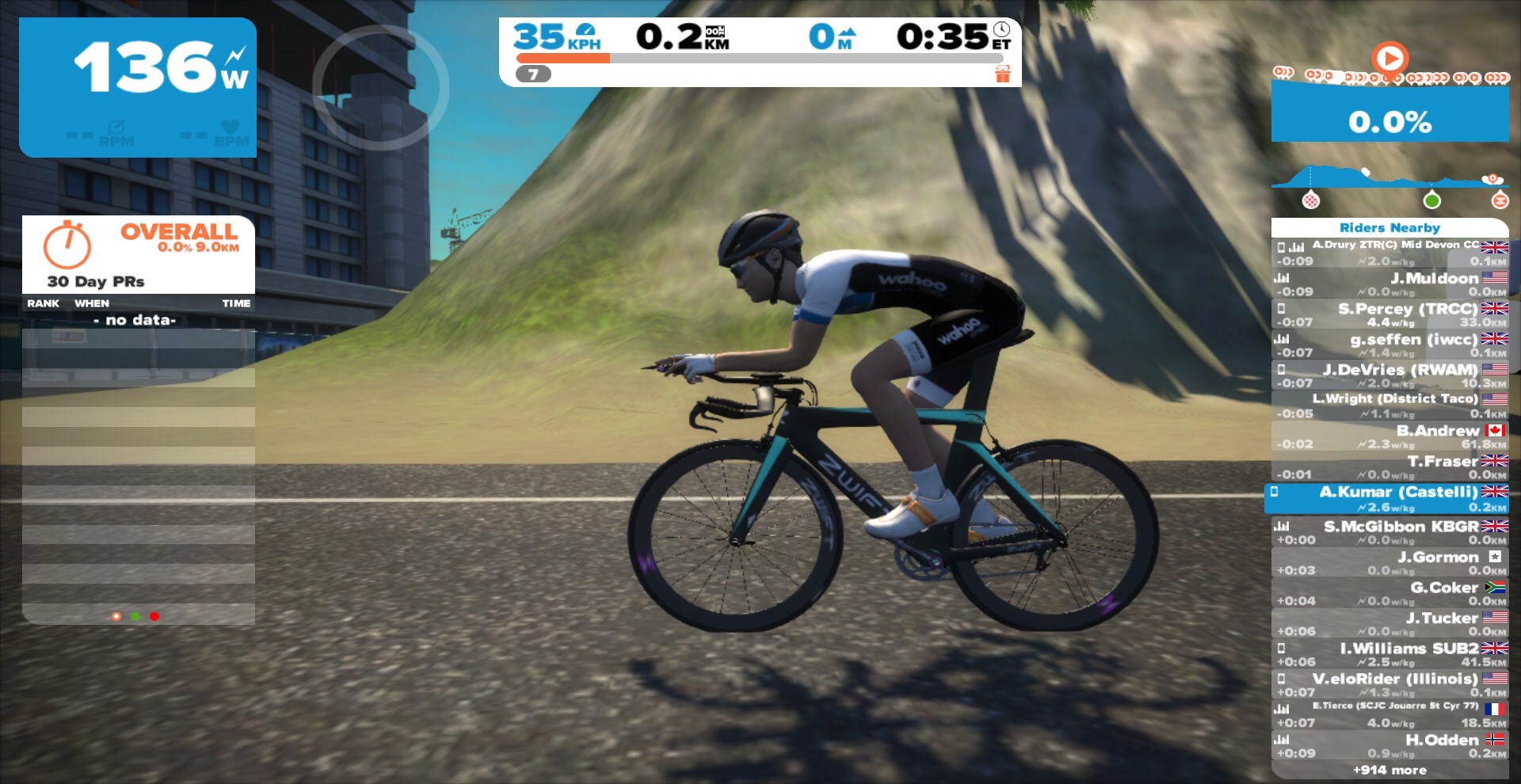 So now I was in possession of what Zwift classes as a ‘dumb’ turbo trainer. The maps on Zwift feature inclines, descents, flats, etc. The biggest problem I had with this was that as I was cycling through the Zwift world, resistance from my turbo would remain constant. So going up an incline would mean that my speed on screen would decrease, but resistance would remain constant from my turbo, making the overall cycling experience feel somewhat unnatural. Based on this, I would also struggle to find the correct gear to mimic the incline/descent. I’d find myself either spinning over 100rpm with very low watts on an incline, or grinding away in a high gear of a descent. A smart turbo trainer can overcome this by providing the appropriate resistance on the virtual hill gradients.